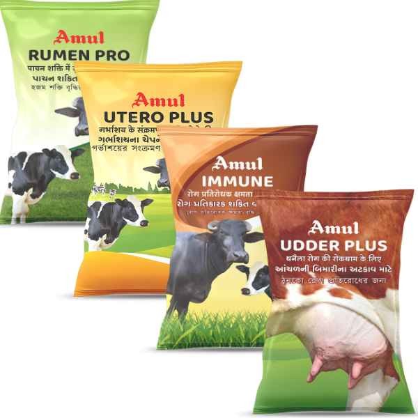 Amul Dairy also manufactures and sells packaged ethnoveterinary medicine pouches for prevention of mastistis, improved digestion, immunity, retention of placenta, abortion and agalactia (the absence of milk production in an animal that should be producing milk).